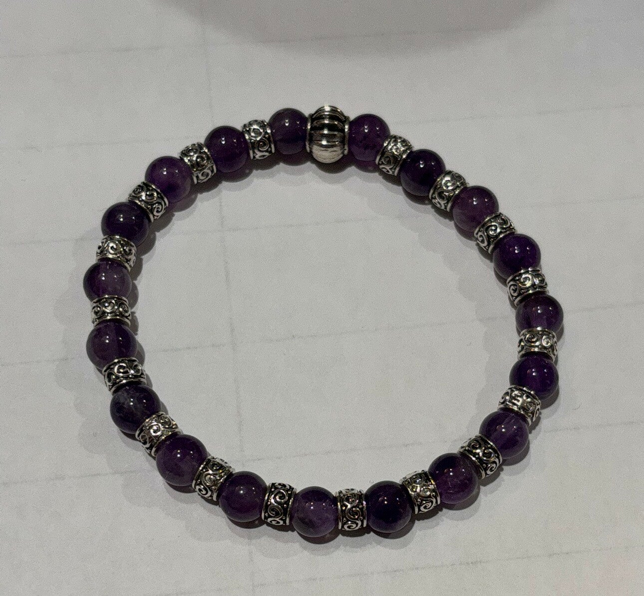 The beads on this bracelet mean love they have a round pewter spacer bead in between.