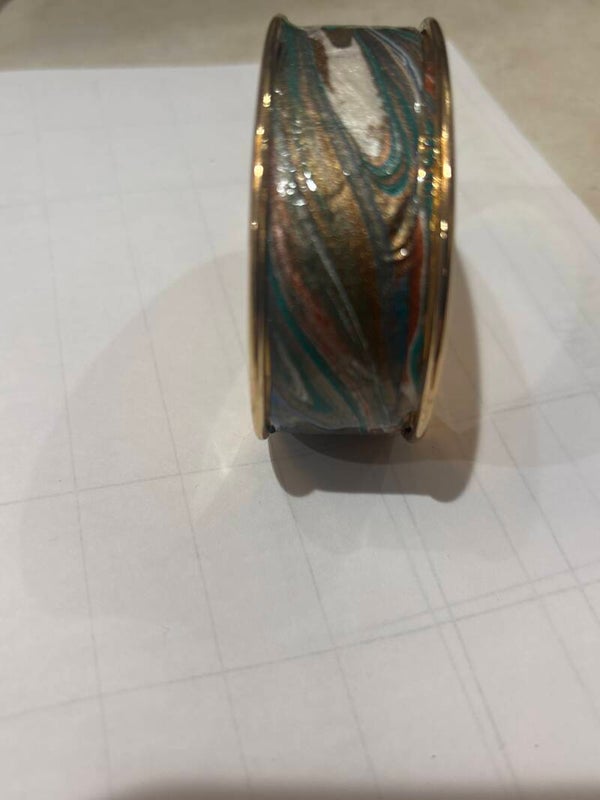 Bronze,blue,teal and white are swirled into this bracelet, bringing warm tones to blend with any other color!